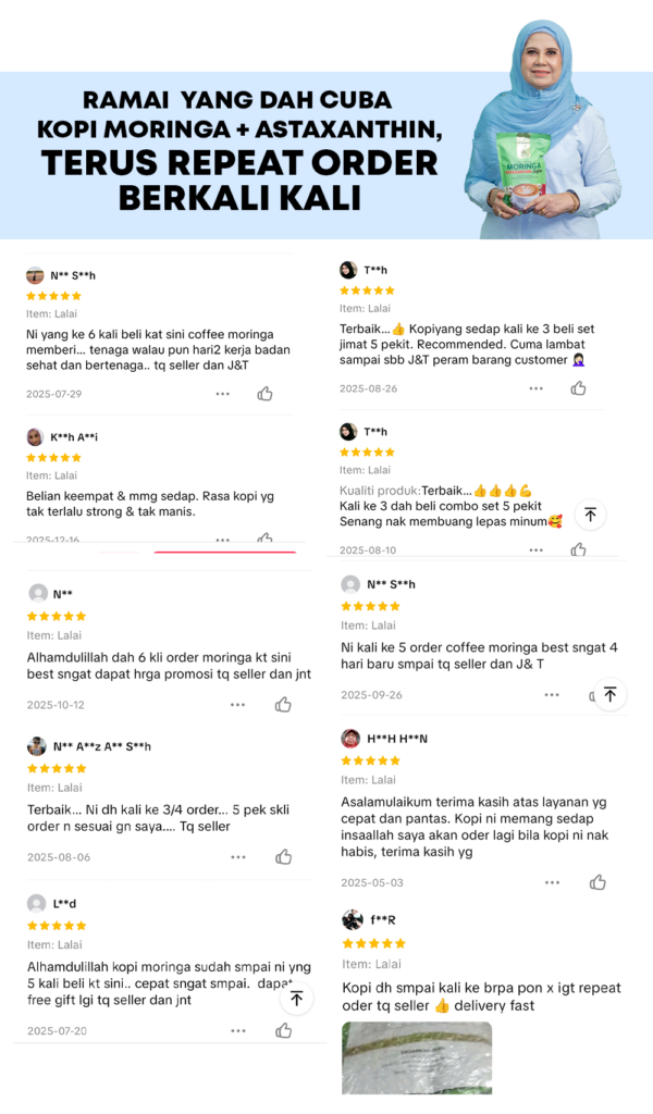 “Namun begitu, pengambilan Astaxanthin dan Moringa perlu mengikut sukatan yang disarankan oleh doktor bagi memastikan keselamatan, keberkesanan dan manfaat kesihatan yang optimum.”